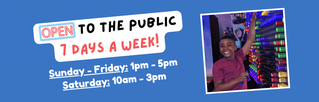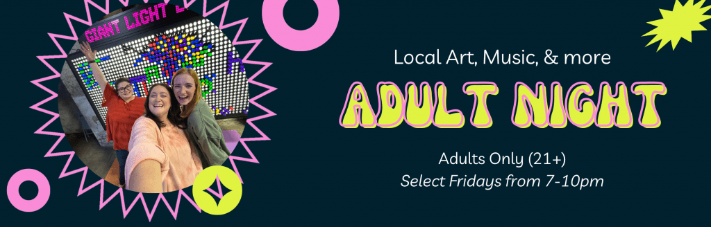 Learn more »See our events calendar for upcoming special events & open play hours! Learn more about birthday parties, field trips, and event rental opportunities on the Events tab in our main menu.