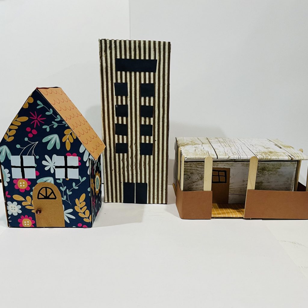 Participants will review 2D images of buildings that have integral 3D shapes to create their own buildings, skyscrapers, and or homes. They will then identify and practice construction skills using various art materials to create their original 3D designs as a creative expression.
