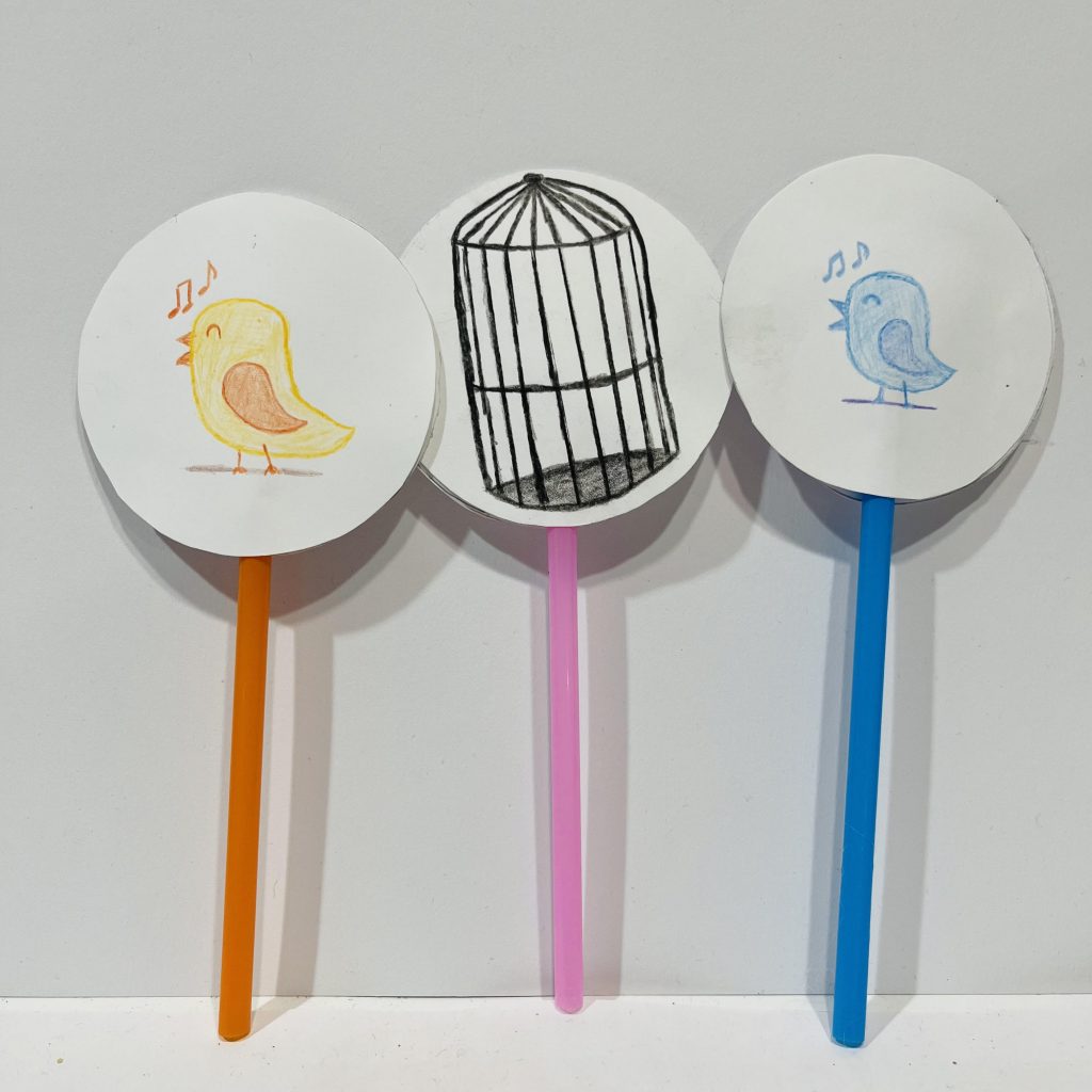 Thaumatropes are optical illusions that operate by switching between two images so rapidly that the images appear as one image. This unit explores continuous streams of motion and illusions of motion. Participants learn that forces cause change and energy exists in many forms by investigating the phenomenon of persistence of vision. We create thaumatropes that go along with your unit, or from the examples provided. Students can do express-motion animation through their self-created art thaumatrope as an original artwork.